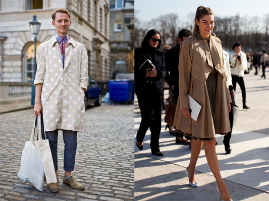 top to bottom: 1) layering; 2) coupling a sweater with a spring dress; 3) opting for a light yet substantial trench jacket.